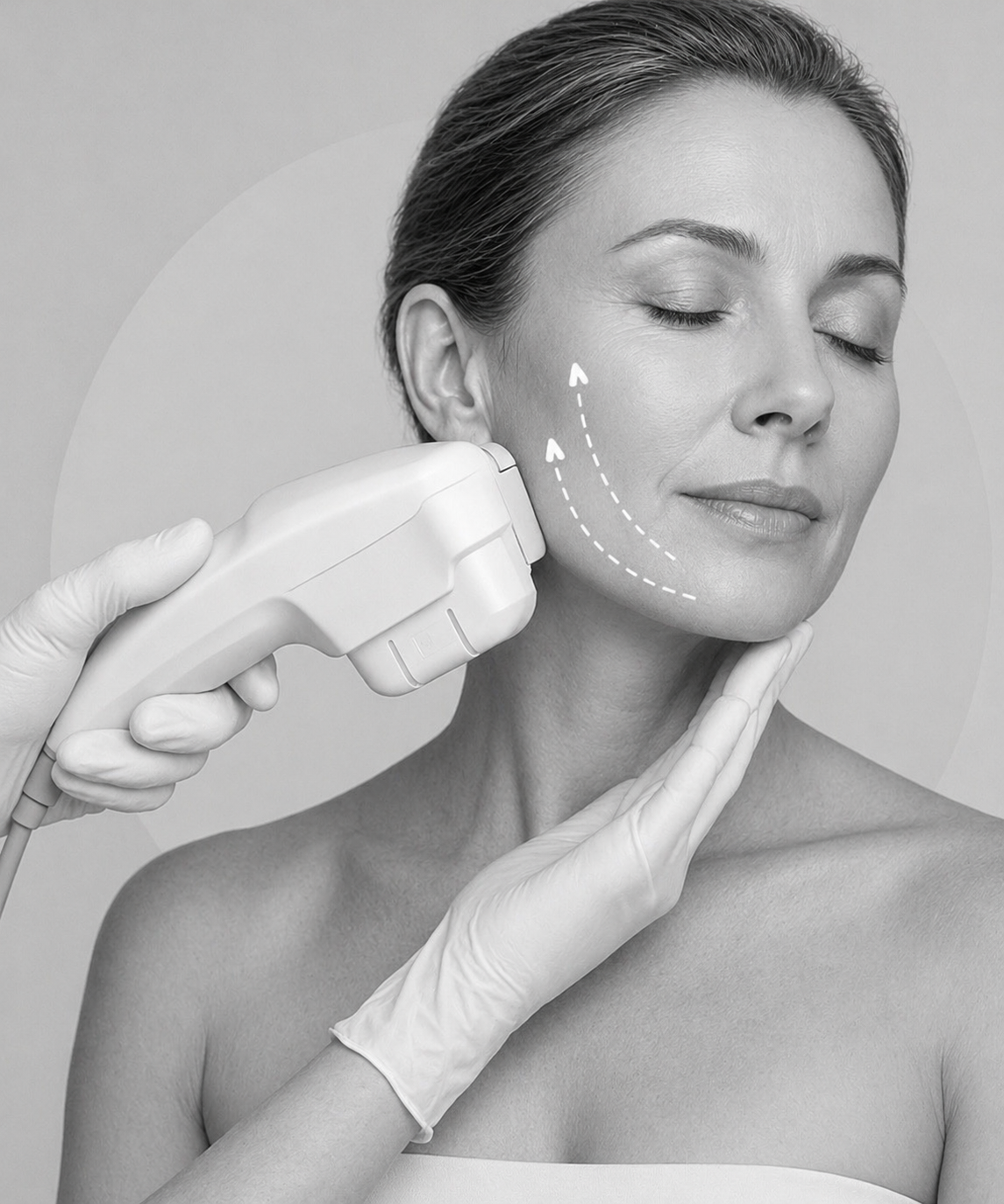 Le traitement commence par un diagnostic professionnel de la peau afin d’évaluer le relâchement cutané, la qualité du collagène et la structure du visage. Un gel conducteur est appliqué sur la peau, puis l’appareil HIFU délivre des impulsions d’ultrasons ciblées dans les couches profondes. Les zones fréquemment traitées comprennent le front, les sourcils et le contour des yeux, les pattes d’oie, les sillons nasogéniens, les joues, l’ovale du visage, le double menton, le cou ainsi que le décolleté. La sensation est généralement une légère chaleur ou de courtes impulsions d’énergie. La procédure est bien tolérée et ne nécessite aucun temps de récupération. Vous pouvez reprendre immédiatement le travail et vos activités quotidiennes après la séance.